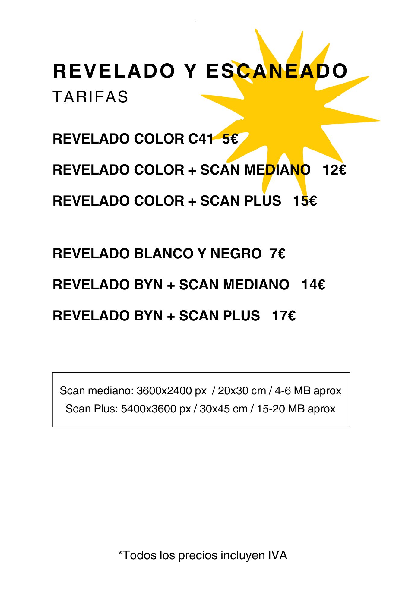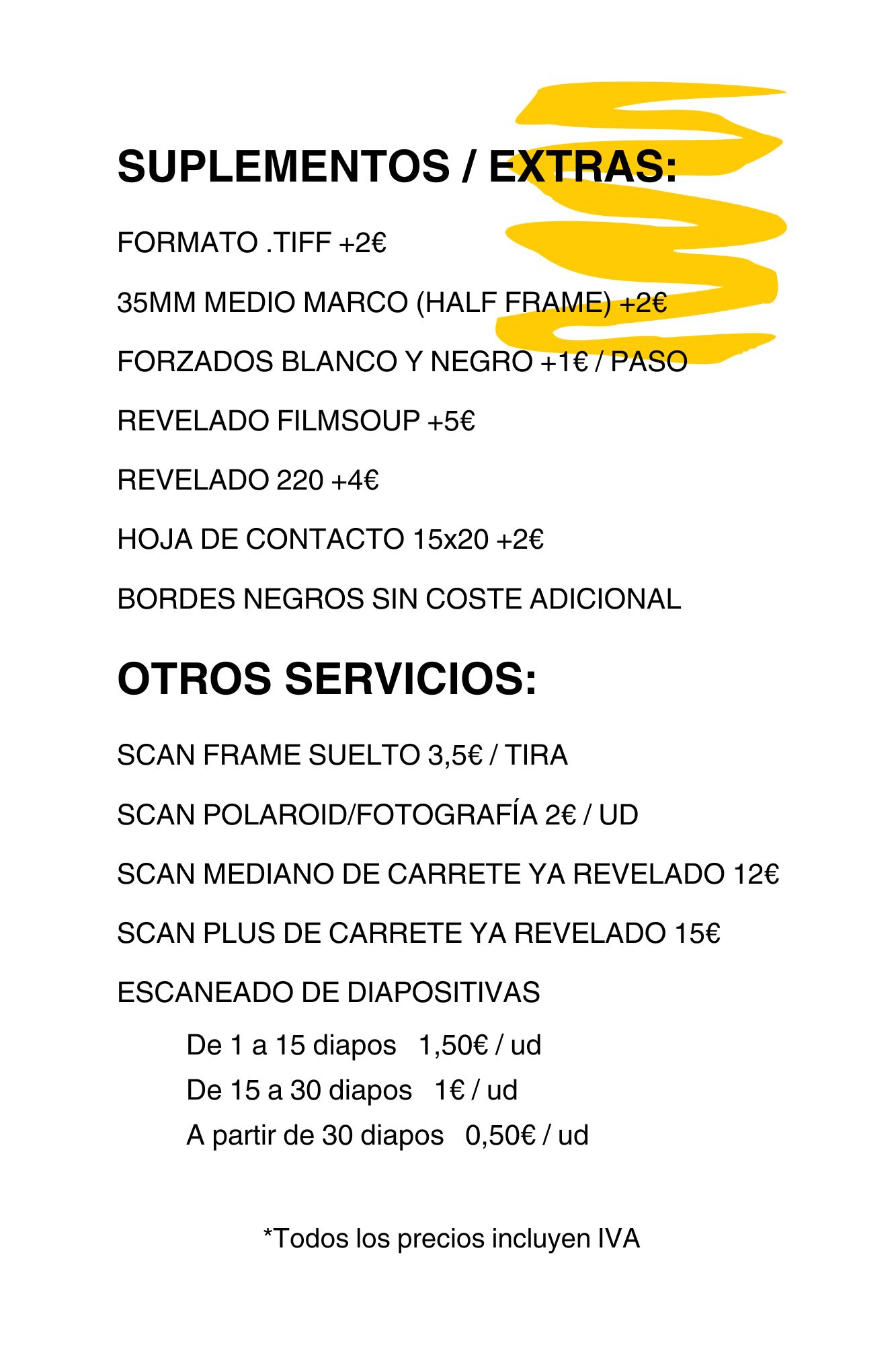 Para otros servicios como revelados urgentes, restauración de fotografías deterioradas o compra de película puedes consultarnos por email o Instagram